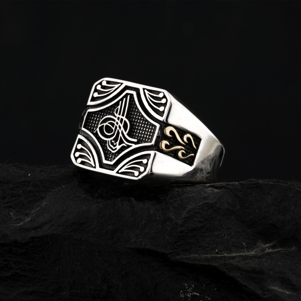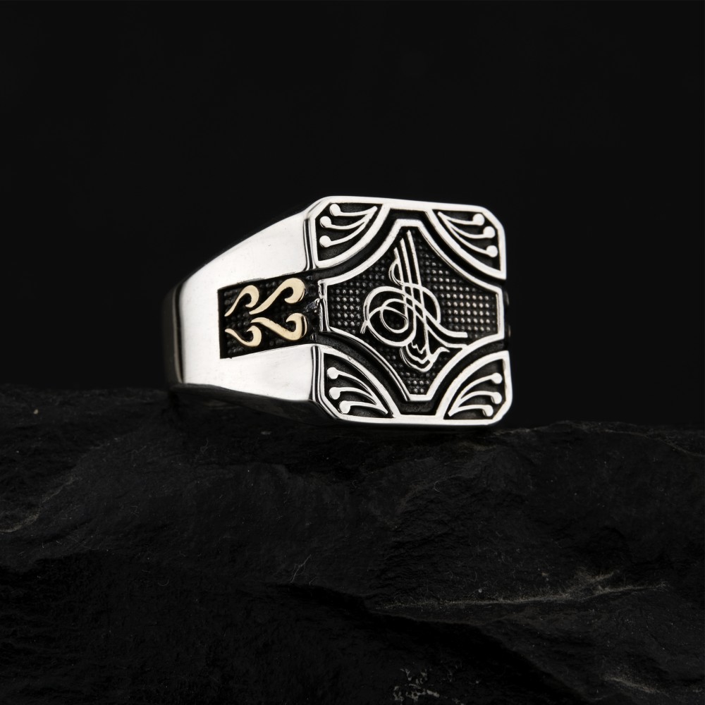 El İşçiliği Tuğra Motifli Gümüş Erkek Yüzük