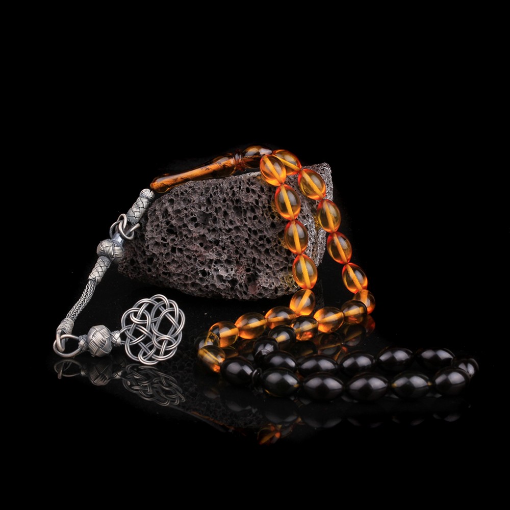 1000 AYAR KAZAZ PÜSKÜLLÜ SARI SİYAH ATEŞ KEHRİBAR TESBİH