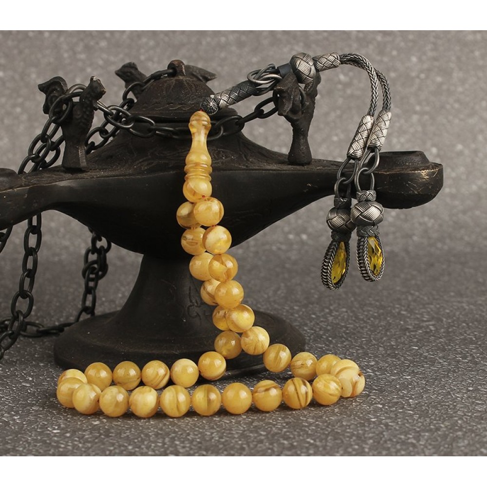 Gümüş Kazaz Püsküllü Kehribar Tesbih