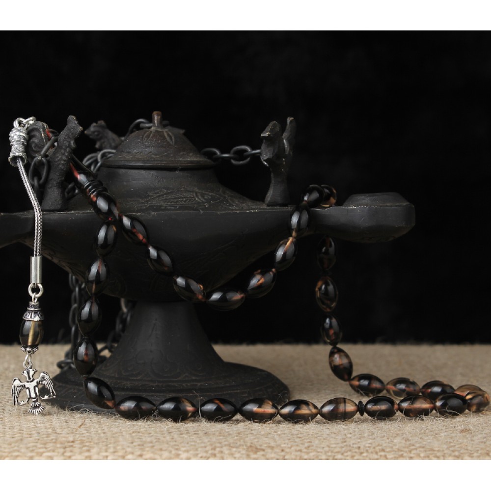 Osmanlı Benzetmezi Gümüş Püsküllü Sıkma Kehribar Tesbih